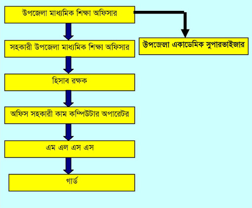 প্রতিটি উপজেলা মাধ্যমিক শিক্ষা কার্যালয়ে ১জন মাধ্যমিক শিক্ষা অফিসার, ১ জন সহকারী উপজেলা মাধ্যমিক শিক্ষা অফিসার, ১ জন হিসাবরক্ষক, ১ জন অফিস সহকারী কাম কম্পিউটার অপারেটর, ১জন অফিস সহায়ক ও ১ জন নৈশ প্রহরীর পদ রয়েছে। এছাড়াও বর্তমানে উপজেলা একাডেমিক সুপার ভাইজার পদে একজন প্রথম শ্রেণীর কর্মকর্তা কর্মরত রয়েছেন।